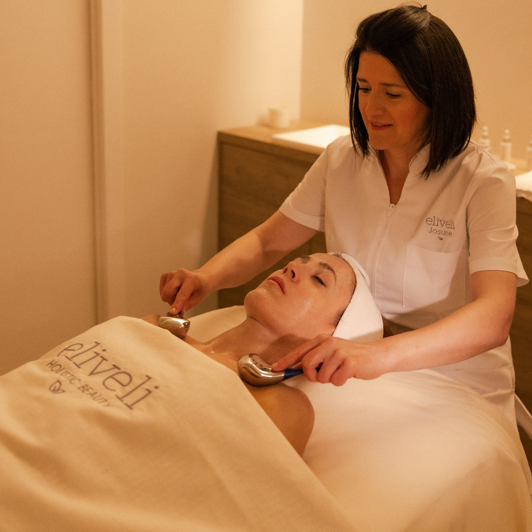 En primer lugar preparar y equilibrar la piel con una desincrustación y oxigenación profunda de la piel, con este paso creamos un escudo esencial que nos protege de las agresiones externas.